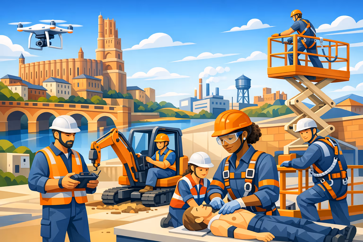 Ce centre de formation en Tarn, région Occitanie, accompagne au quotidien les entreprises dans leurs projets de formation en sécurité au travail. Le contexte économique local, marqué par l'aéronautique, l'industrie et le BTP, appelle des compétences techniques pointues et régulièrement mises à jour. C'est précisément la mission de ce centre : former, certifier et sécuriser.
