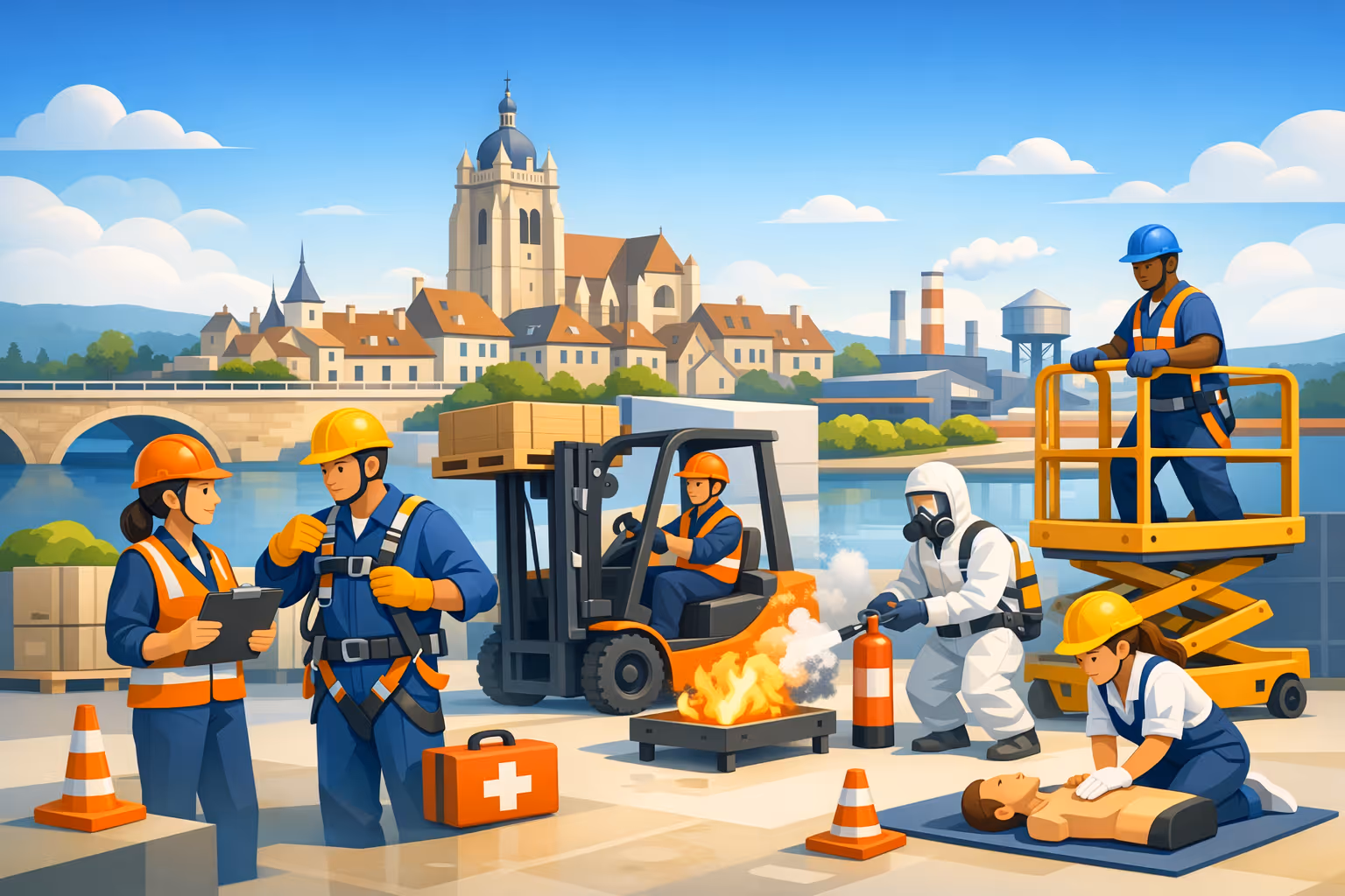 Ce centre de formation, situé en Jura au sein de la région Bourgogne-Franche-Comté, accompagne les entreprises locales dans la sécurisation de leurs équipes et le respect de leurs obligations réglementaires. Le bassin économique de la région, porté par la métallurgie, l'agroalimentaire et la logistique, génère une demande forte en compétences certifiées à laquelle ce centre répond au quotidien avec sérieux et réactivité.