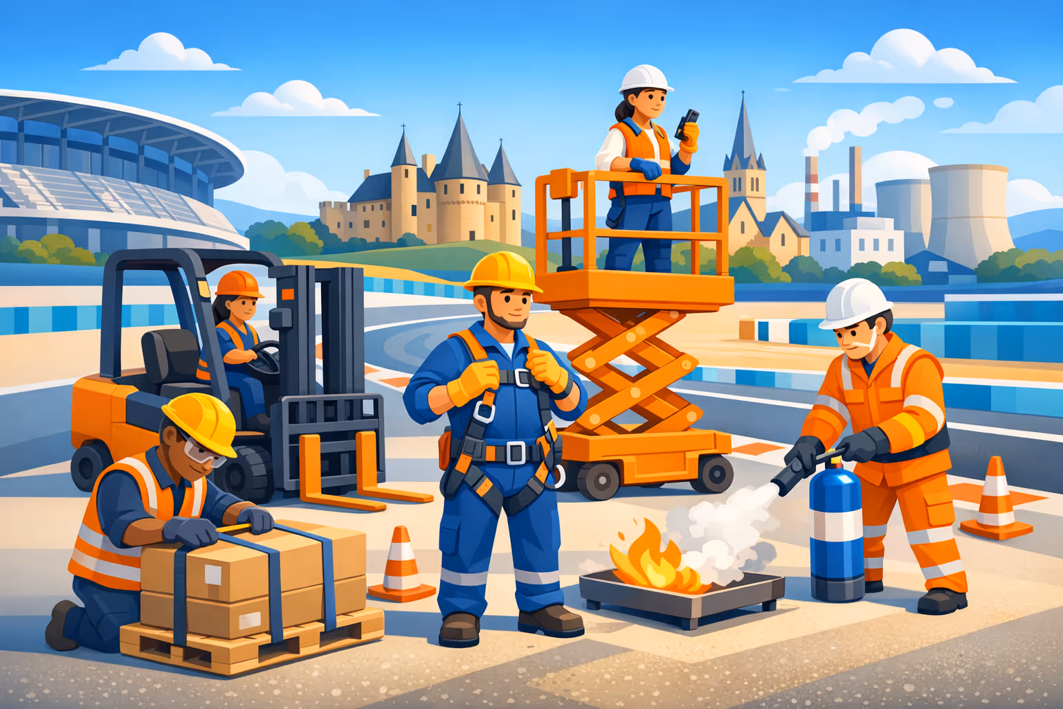 Ce centre est une plateforme complète de formation CACES®, couvrant un large éventail de familles d'engins : ponts roulants et portiques, gerbeurs, nacelles et PEMP et chariots automoteurs. Cette offre étendue permet aux entreprises de former l'ensemble de leurs conducteurs au même endroit, quel que soit le type de matériel utilisé sur leurs chantiers ou dans leurs entrepôts. Chaque formation débouche sur le CACES® correspondant, reconnu par l'ensemble de la profession.