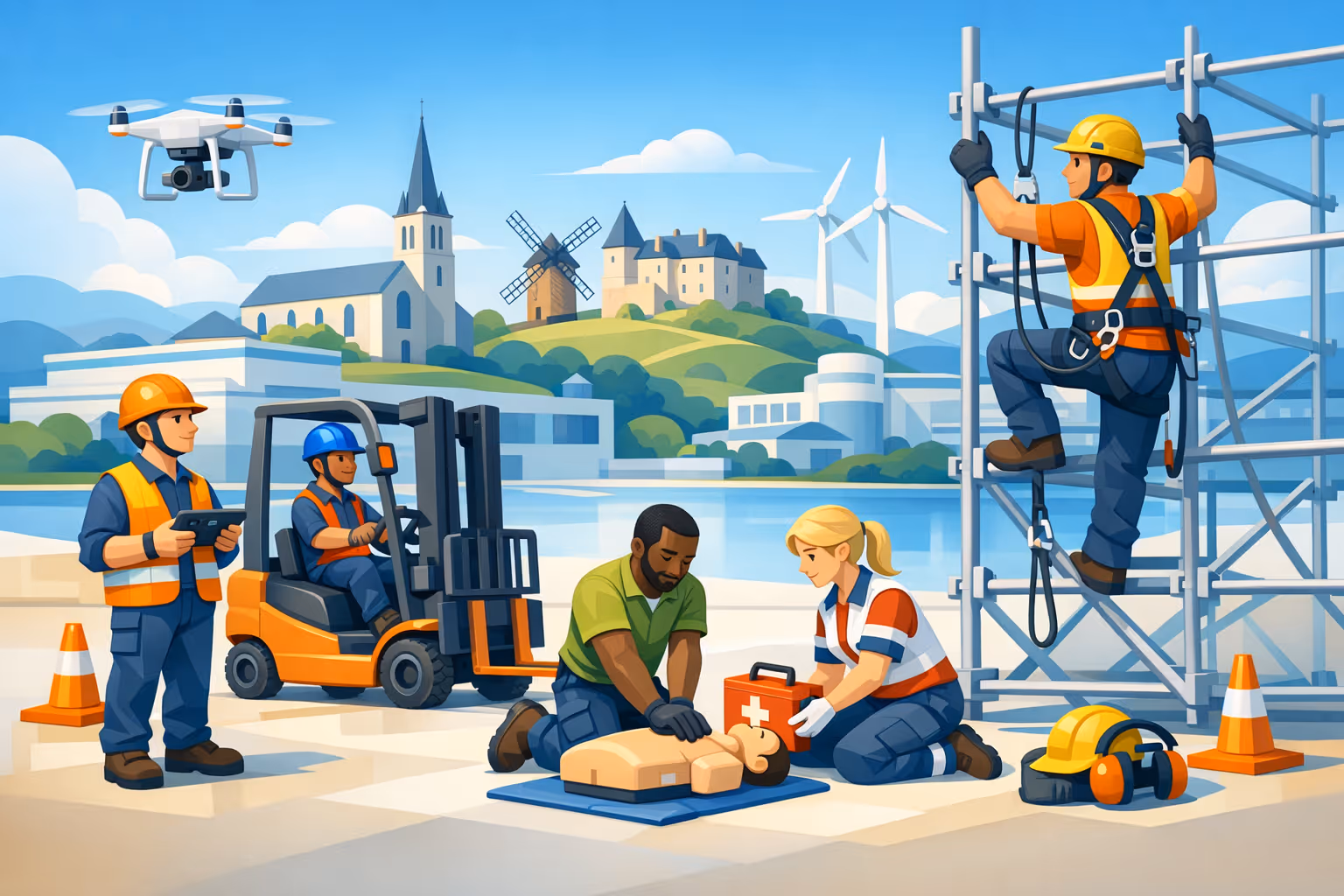 Ce centre de formation en Vendée, région Pays de la Loire, accompagne au quotidien les entreprises dans leurs projets de formation en sécurité au travail. Le contexte économique local, marqué par l'industrie navale, l'agroalimentaire et la construction, appelle des compétences techniques pointues et régulièrement mises à jour. C'est précisément la mission de ce centre : former, certifier et sécuriser.