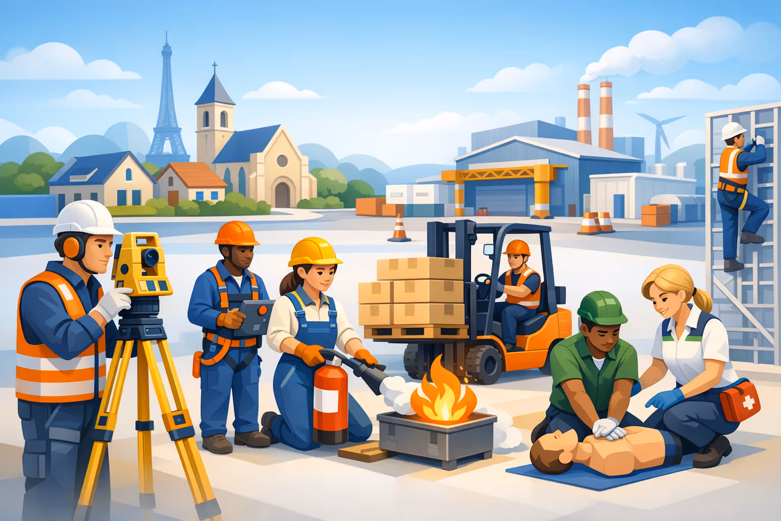 Ce centre de formation en Essonne, région Île-de-France, accompagne au quotidien les entreprises dans leurs projets de formation en sécurité au travail. Le contexte économique local, marqué par les grands chantiers du BTP, l'industrie et le tertiaire, appelle des compétences techniques pointues et régulièrement mises à jour. C'est précisément la mission de ce centre : former, certifier et sécuriser.